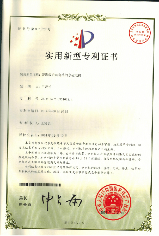 繼"舊電機永磁化再製造"技(jì)術成功通過國家科技成果認定後(hòu),被應用(yòng)在舊電機永磁化再製造上技術“將原三相異步電動機再製造成為永磁同步電(diàn)動機”開創了我國電(diàn)機能效提升之先河,此項技術得到國內許多知名專家(jiā)、學者的(de)肯(kěn)定。我(wǒ)司(sī)再製造的(de)44個型號產品於2016年11月均被國家工信部列入再製(zhì)造產品目錄(第(dì)六批)。