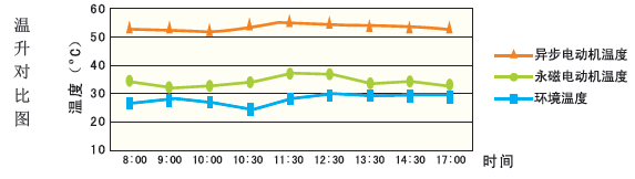 | 溫升低15~20℃ 與普通(tōng)三相異步(bù)電動機相(xiàng)比,稀(xī)土永(yǒng)磁同步電動機的電阻損耗小,因此總損耗大大降低,同時也降低(dī)了電動機(jī)的(de)溫(wēn)升。經(jīng)實測,在同等條件下,稀(xī)土永磁電動機的工作溫度比異步電動機(jī)低15~20℃,因此如果車間全部改造使(shǐ)用稀土永磁電動機(jī),車(chē)間內的溫度將明顯降低,對改善夏季車間工作環境及節約空調用電有(yǒu)很大作用。 ![]() |